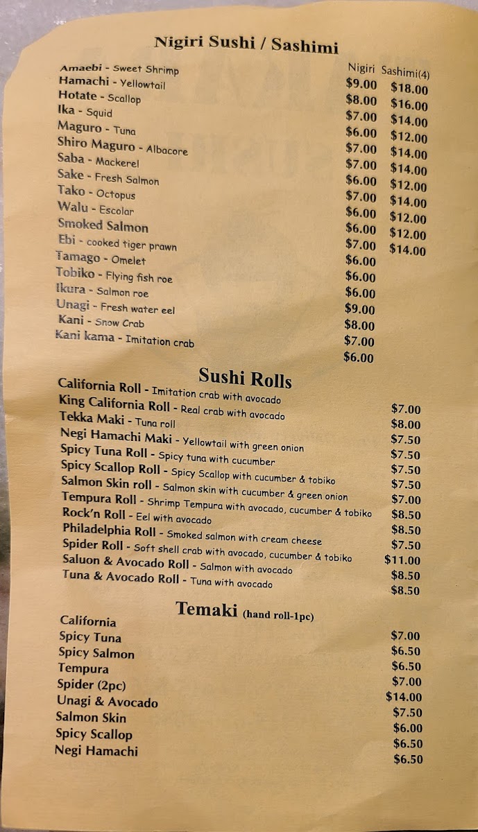 Welcome to Takara Sushi SF, nestled in the heart of San Francisco at 4243 18th St. This charming gem offers a delightful menu highlighting the essence of sushi with a modern twist. Guests can indulge in exquisite nigiri and sashimi, featuring fresh options like Amaebi sweet shrimp and Hamachi yellowtail. For those craving rolls, the menu boasts enticing selections such as the California Roll and creative specialties like the Pink Dragon Roll, celebrated for its flavorful baked salmon topping.